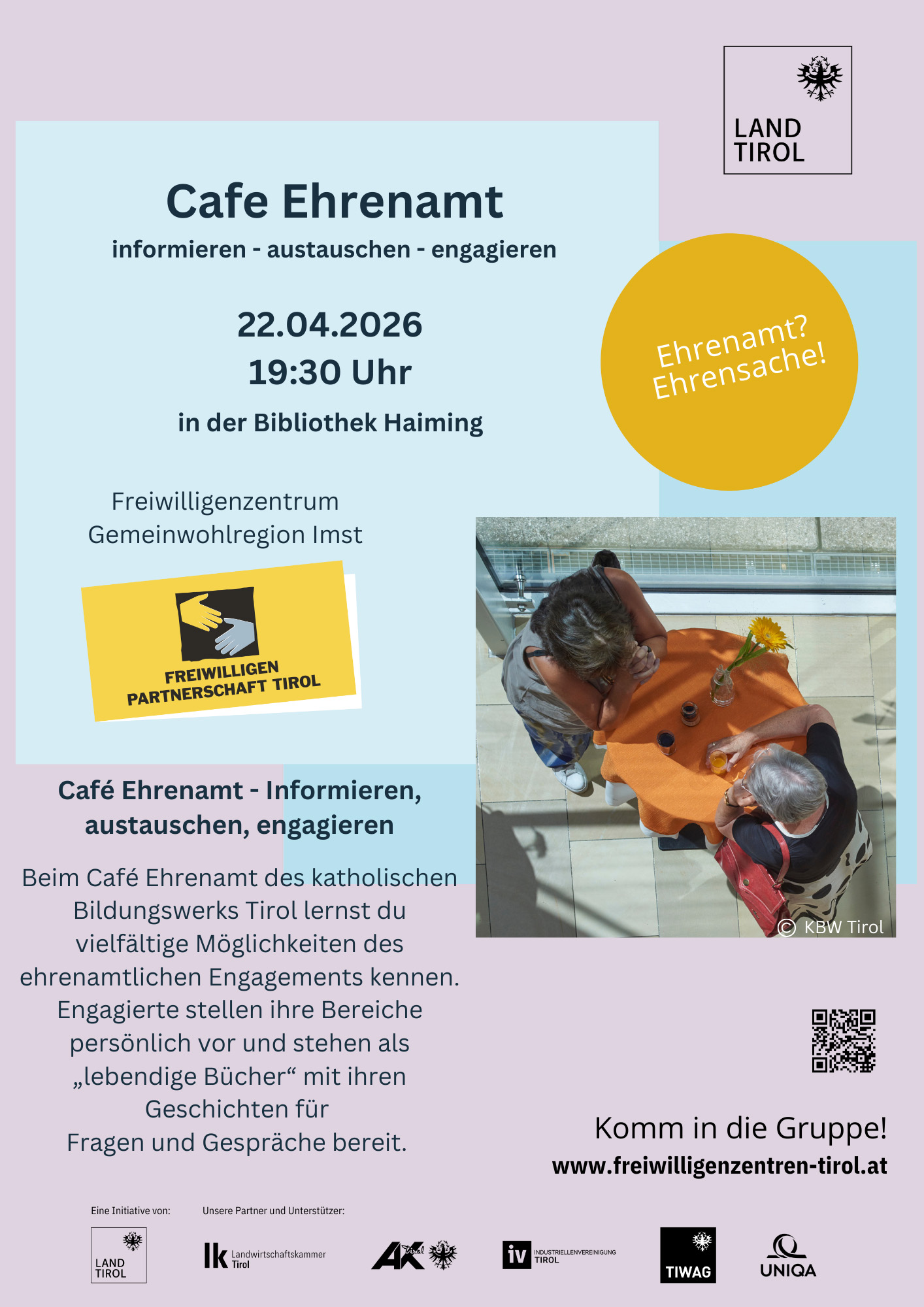 Unser Bildungsangebot bietet eine Zusammenstellung an Veranstaltungsangeboten, aus denen die Zweigstellen auswählen können. Aufgrund der verstärkten Zusammenarbeit mit dem Kath. Bildungswerk Tirol haben sich Änderungen im Angebot ergeben.